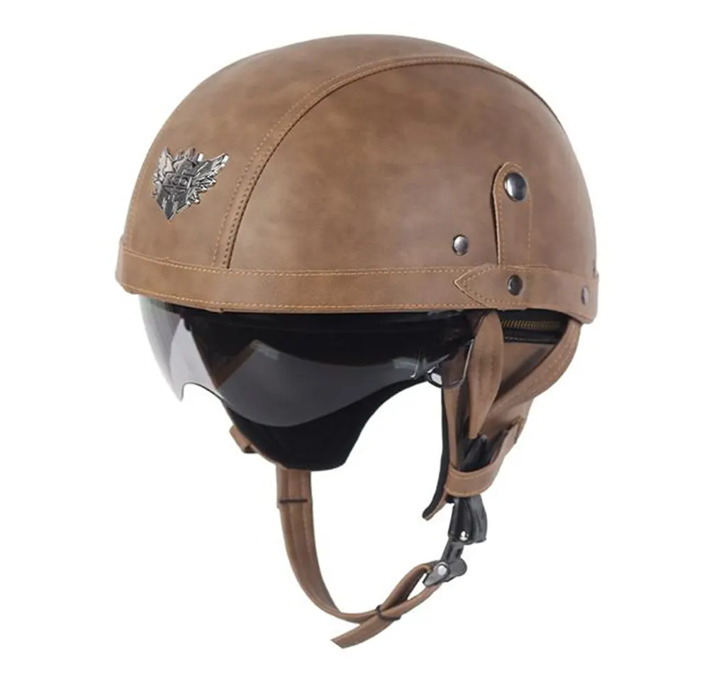 Motozikleta Aurpegi Erdiko Kasko Larruzko Betaurrekoekin Hegaldiko kasko klasikoetan inspiratuta dago, larruzko ehundura metalezko bekleekin konbinatuz, 1960ko hamarkadako ibilaldi estilo retroa birsortzeko. Behar praktikoak asetzen dituen bitartean, hiriko ibilaldietan eta kaleko kulturan ikusmen aipagarri bihurtzen da, moto retroetarako, gurutzontzietarako eta pertsonalizatutako eredu pertsonalizatuetarako egokia.