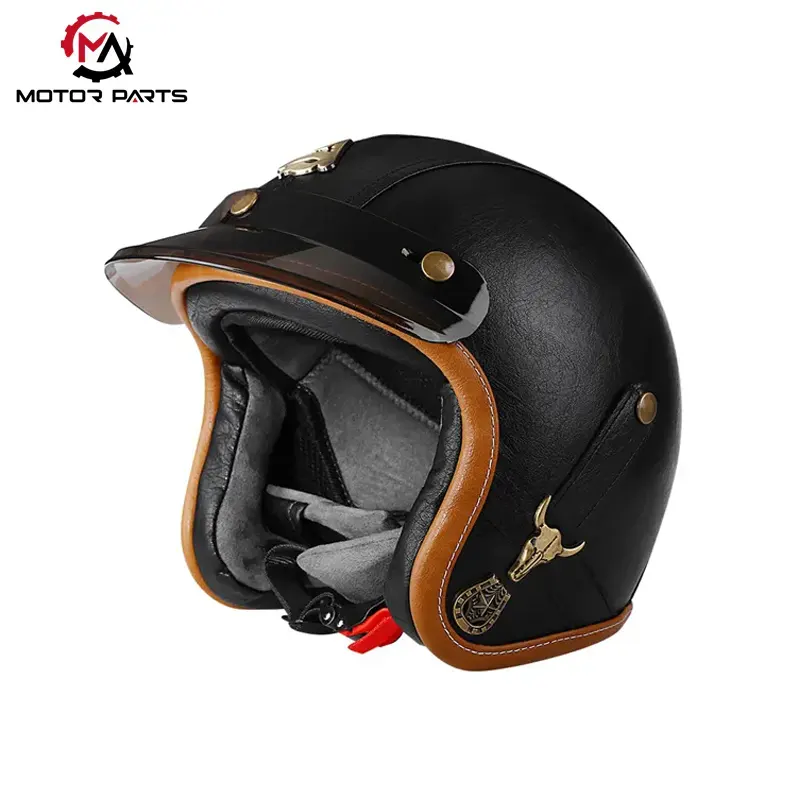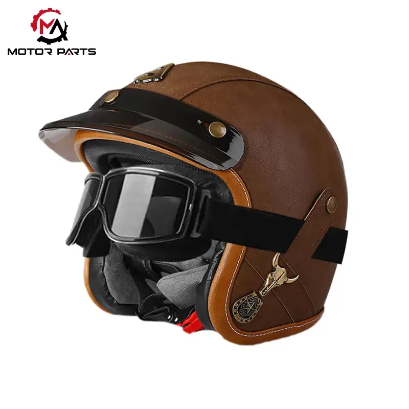 Motozikleta aurpegi erdiko kasko larruzko betaurrekoekin pertsonalizagarria Max Trading Txinako kasko erdiko produktu klasikoa da, hiriko ibilaldietarako eta moto vintage zaleentzat diseinatua.