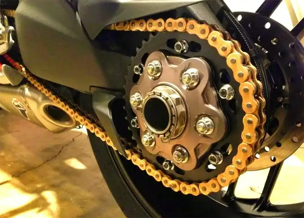 Motoziklismo askoren potentzia-transmisio-eskemen artean, kate eta sprocket transmisio sistema moto askoren aukera hobeagoa bihurtu da ezaugarri sinple eta eraginkorrak direla eta. Transmisio-eraginkortasun handia du eta pisu arina orokorra, batez ere momentu altua behar duten ibilgailuen motarako egokia da. Hala ere, zenbait muga ere baditu, hala nola higadura funtzionamenduan zehar. Motorren potentzia atzeko gurpiletara igortzeko prozesuan zehar, momentu anplifikazioa eta murrizketa-erlazioaren doikuntza lor daiteke aurreko eta atzeko engranajeen hortz-erlazioa doituz.